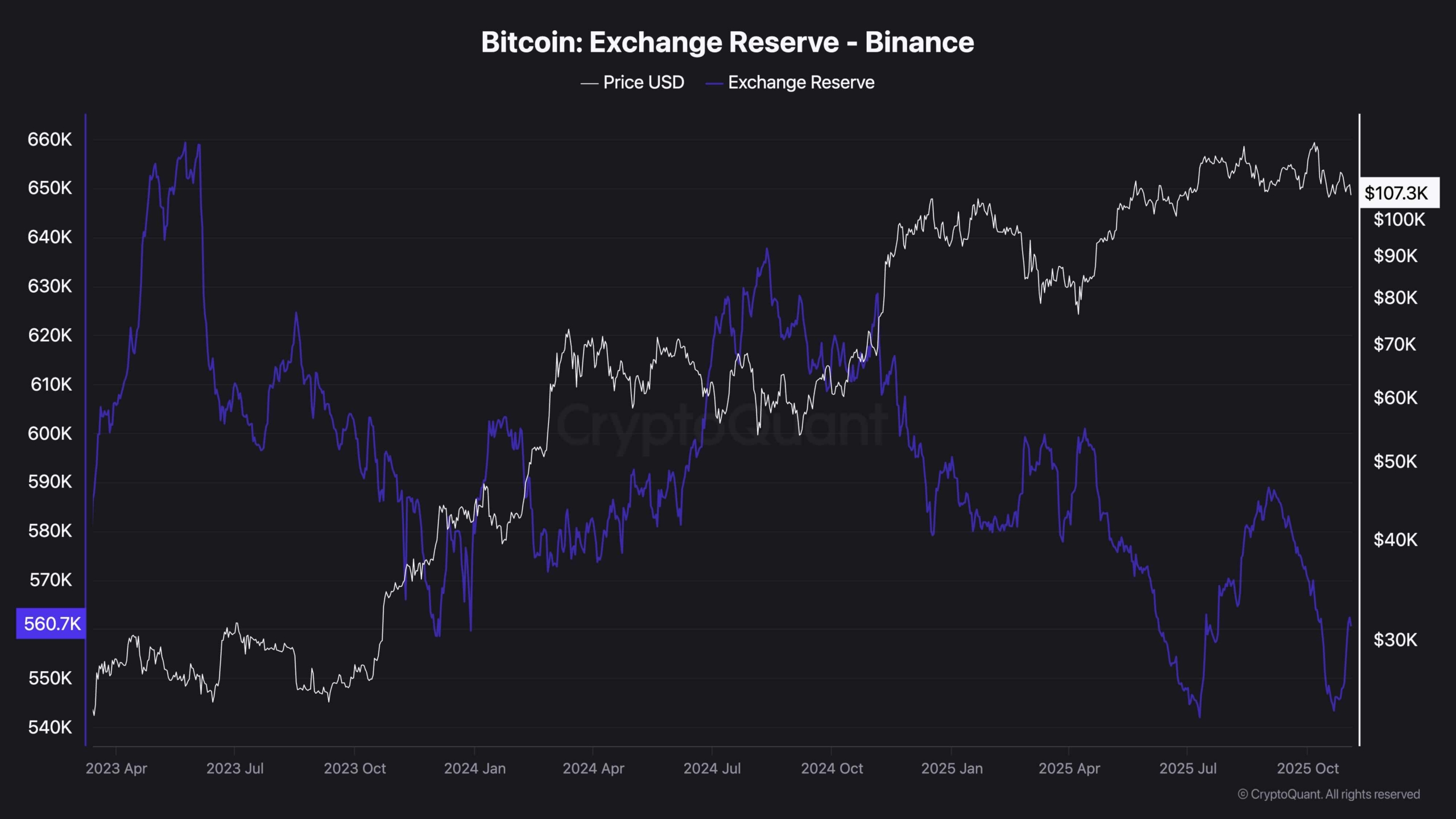 The latest exchange reserve data reveals significant discrepancies between global and regional exchange trends. While the total Bitcoin reserves of all major exchanges continue to decline, indicating long-term accumulation and decreasing selling pressure, Binance's foreign exchange reserves have increased noticeably in recent weeks.
