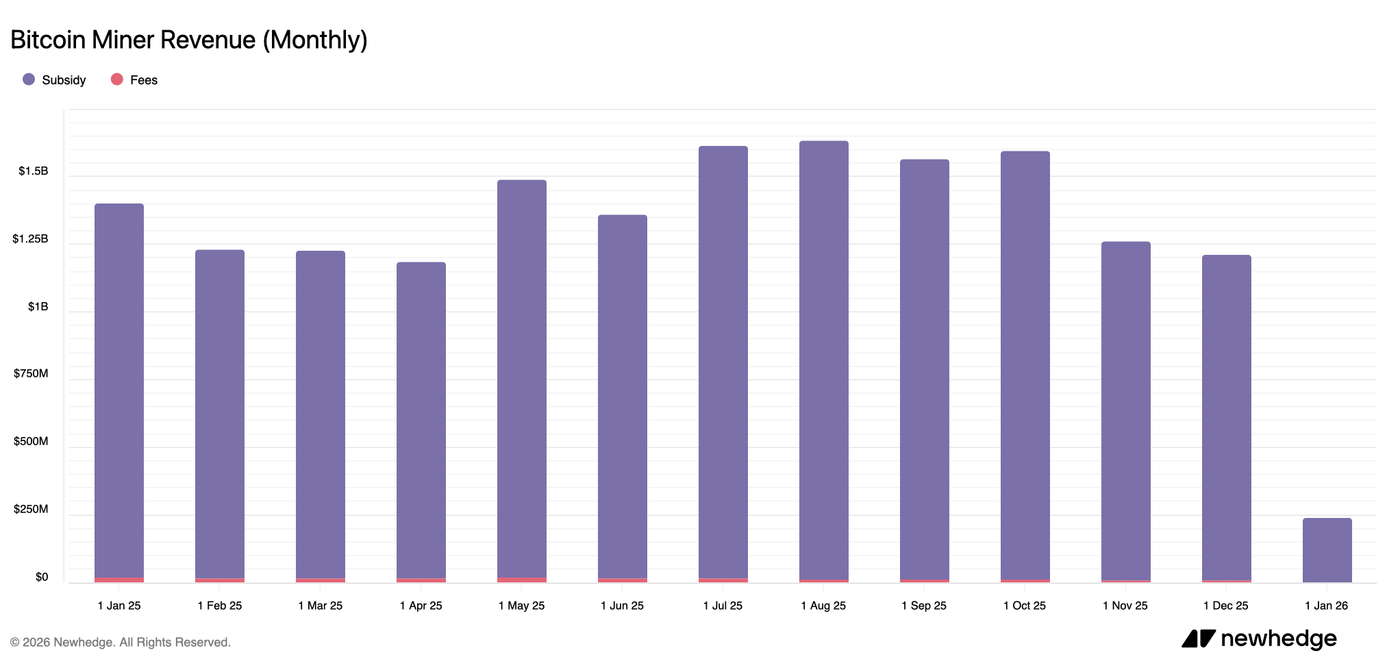 Although the situation for Bitcoin miners will improve in 2026, December profits will still be That ranks as the second-weakest month of 2025, behind April's $1.18 billion cumulative total, according to newhedge.io statistics. Miner revenue in November was $1.26 million, down 4.13% from $1.21 billion in December.