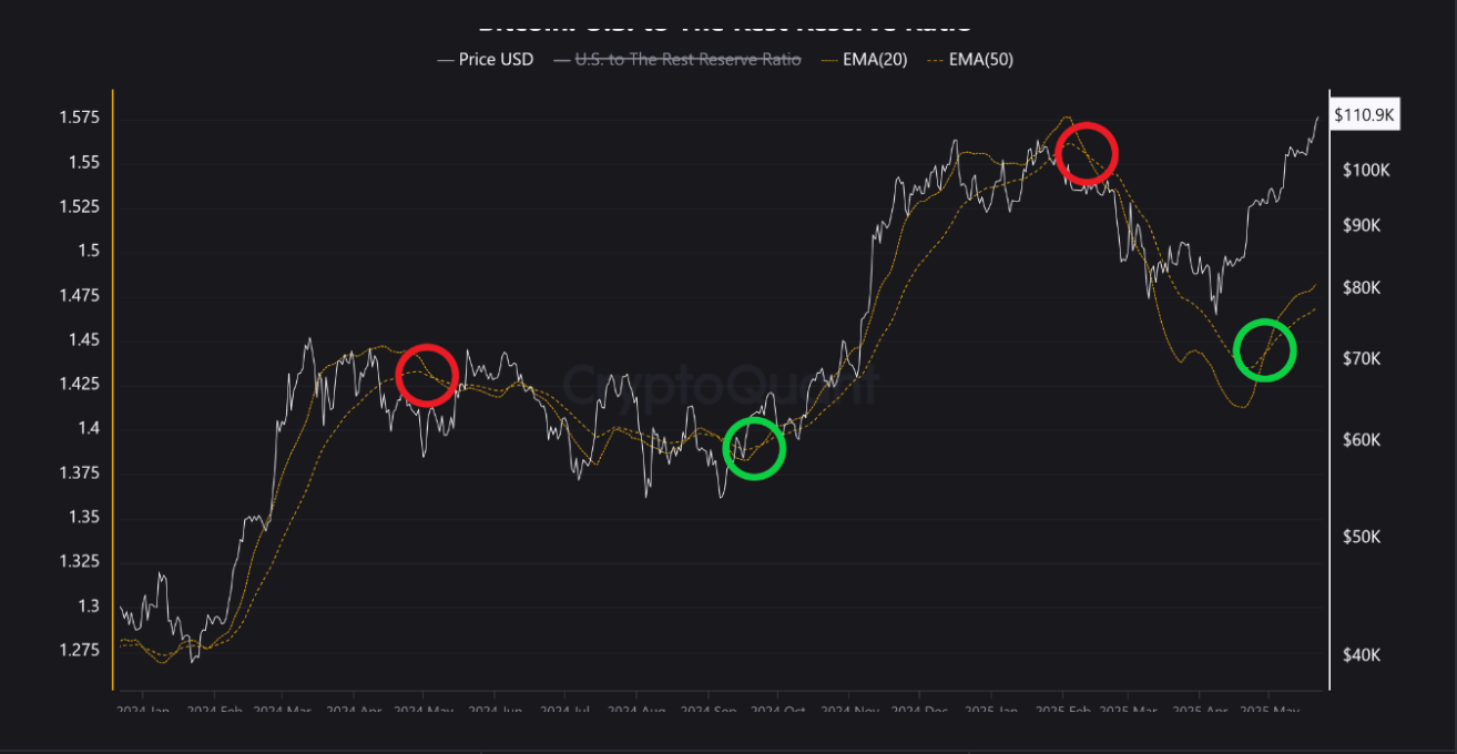 meanwhile, data From Cryptoquant, it shows that US entities, including exchanges, banks and funds, are playing a growing role in Bitcoin's ongoing gatherings. The marked increase in US holdings is consistent with the technical “golden cross” formation.