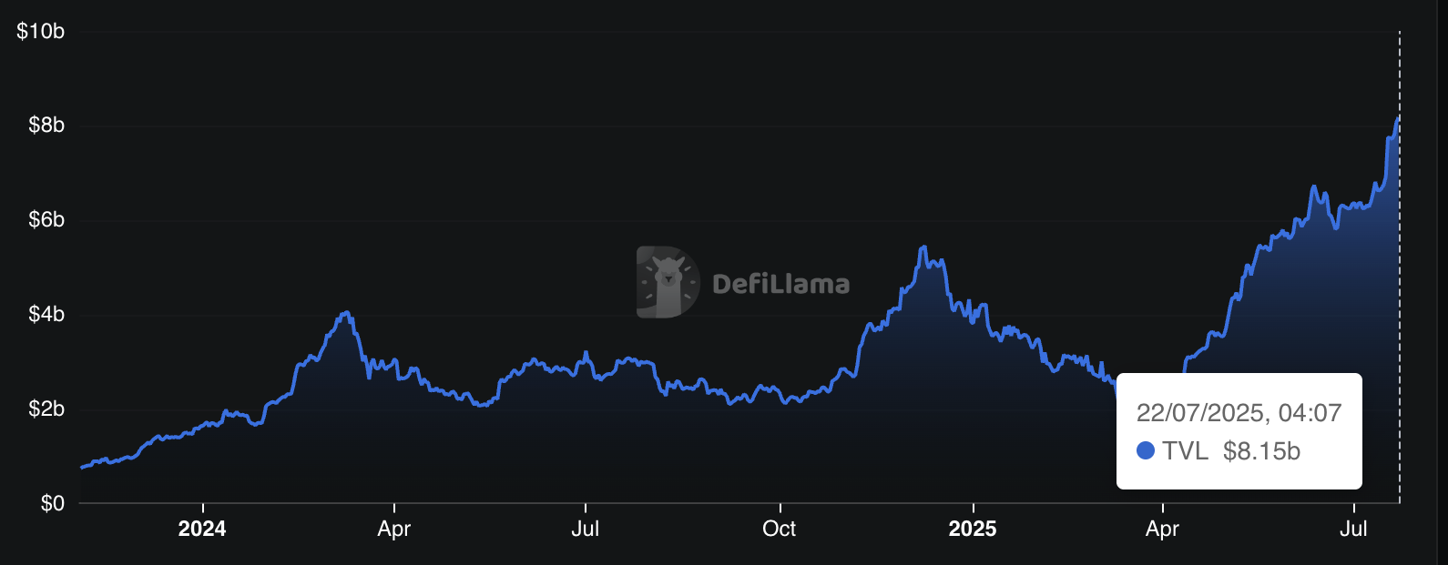 On the other hand, growth is not just limited to prices. Spark's TVL today reached a new peak of $8.15 billion, according to data from Defilama.