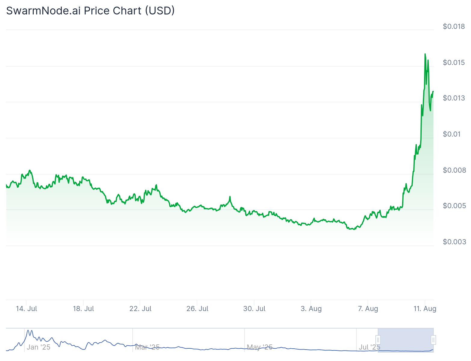 Amid the broader Altcoin rally over the weekend, AI agents' comebacks are led by small AI agent token Swarmnodeai (SNAI), which rose nearly 230% last week and has risen 52% over the past 24 hours.