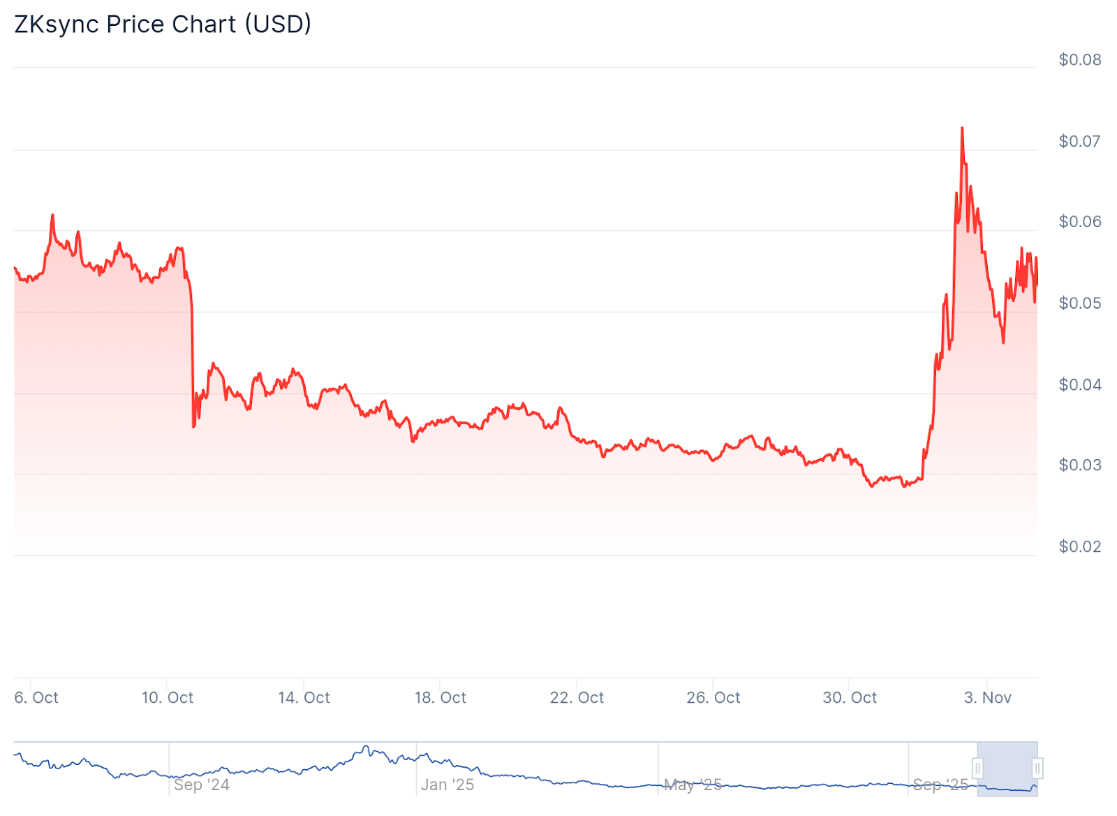 This move could bring a much-needed comeback to the ZK token, which has fallen 83% from its all-time high in June 2024. ZK currently trades at around 5 cents per token, or a market cap of $380 million.